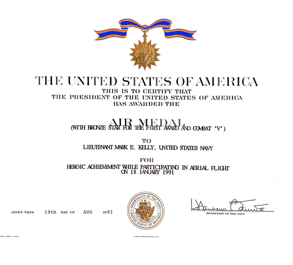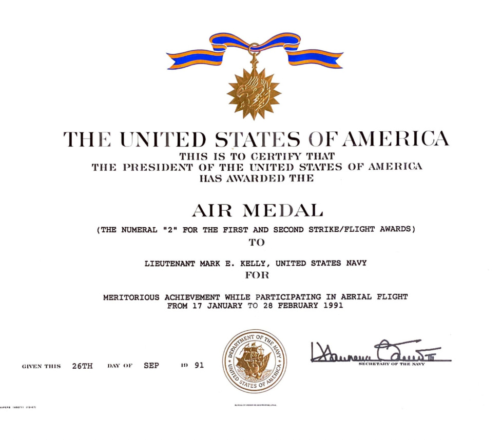 All of them were earned in the Gulf War during Operation Desert Storm. Senator Kelly flew 39 combat missions.