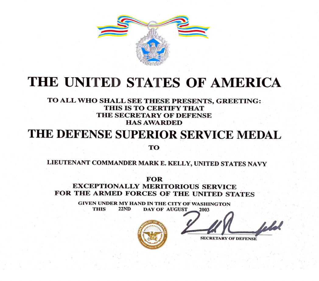 His first DSSM was earned in 2003 when he was at the LBJ Space Center in Houston. The citation was written by none other than Donald Rumsfeld, Secretary of Defense under President Bush: